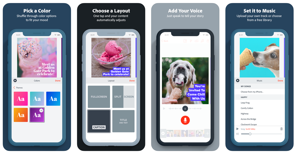 It contains top-grade features such as the spark video which lets you combine videos into one story and the spark posts where you can create professional graphics that suits any social media platform.