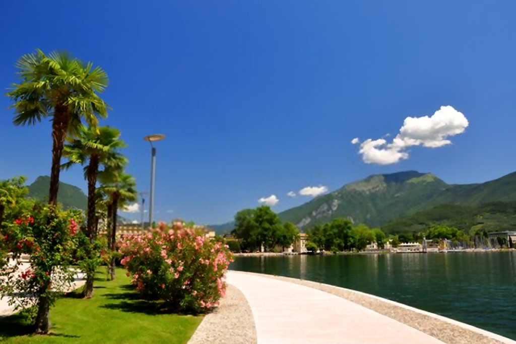 Riva del Garda is also known as the gem of Lake Garda. It is a place enclosed by an area characterized by sharp contrasts, with Mediterranean vegetation thriving at the foot of rocky cliffs that curl up a blue lake.